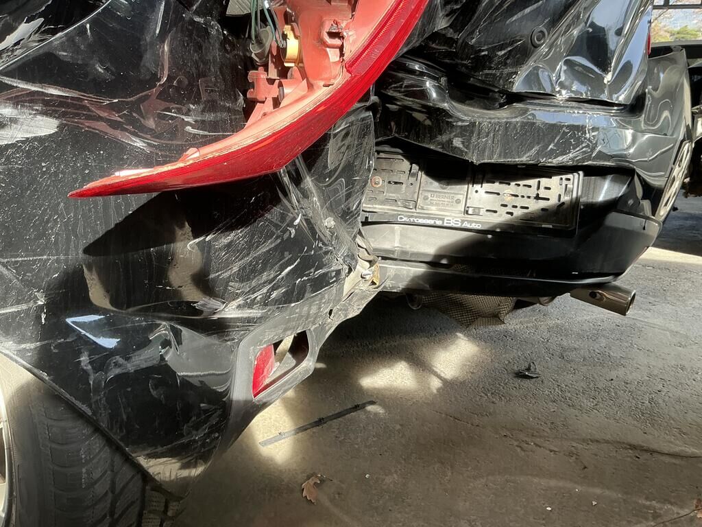 Toit, hayon, ailes arrière, montants de toit arrières, plancher coffre, tôle de fermeture arrière, longerons arrière enfoncés. Pare-chocs arrière, lunette arrière, feux arrière cassés. Risque sur essieu arrière. Echappement plié. Supports de sièges avant et arrière déformés. Moteur ne démarre plus cause inconnue, véhicule légèrement grêlé. Motor Getriebe Vorderachse Hinterachse Airbags ausgelöst: 0 unbekannt ( Abfallcode 16.01.04ak )