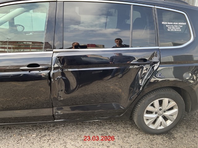 Beschreibung der Schäden: Schaden l. Seite: Beiide Türen, SW B- und C-Säule eingedückt