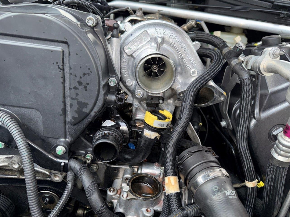 Starker Ölverlust, Öldeckel an der vorderen Seite des Motors ist weggefallen. Schlechte Kompression (max. 13bar). Metallspäne im Motoröl vorhanden. Motorschaden. Turbo muss mit ersetzt werden.
