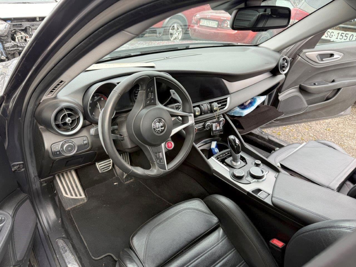 Bremssättel schwarz lackiert, Start/Stop-Funktion, 2-Zonen-Klimaautomatik, Einstiegsschienen verchromt, Pollenfilter (Staubfilter), Licht: Drittes Bremslicht, Bi-Xenon Lichtanlage, Info-Display, Alfa D.N.A System, Partikelfilter und Oxydationskatalysator, Ledersitze, LED-Tagfahrlicht, Getönte Scheiben, Lenkrad: Lenkrad beheizbar, Rücksitze geteilt abklappbar, Notrad, Forward Collision Warning, Bremsassistent (BAS), Sonnenblende rechts, Verstärkte Performance Bremsanlage, Auspuffanlage mit 2 Endrohren, Leuchtweitenregulierung von innen, Pedalerie mit Aluminiumauflage, Elektromechanische Parkbremse, USB+AUX-Anschluss, Notbremsassistent, Aussenspiegel elektrisch einklappbar, Beifahrersitz elektrisch verstellbar mit Memory, Reifen mit Notlaufeigenschaft, Scheibenwischer vorne mit Intervall, Licht: Nebelschlussleuchte, Antiblockiersystem (ABS), Integrated Brake System, Parksensoren hinten, Licht- und Regensensor, Reifendruckkontrollsystem, Allradantrieb permanent, Aussenspiegel automatisch abblendend, Reifendruck-Kontrollanzeige, Leichtmetallfelgen 18J VELOCE, Spurhalteassistent, Fahrersitz elektrisch verstellbar mit Memory, Heckscheibenheizung, Getriebe: 8-Stufen-Automat sequentiell, 3 Kopfstützen hinten, Airbag: Window-Kopfairbags, Airbag: Airbag Fahrer und Beifahrer, Gurtkontrolle, Lackierung: Uni-Lackierung, Seitenfenster-Zierleisten schwarz, Airbag: Seitenairbag für Fahrer und Beifahrer, Lenkrad mit Schaltwippen, 3-Punkt-Sicherheitsgurte auf allen Plätzen, Verchromtes Auspuffendrohr, Sport-Lederlenkrad, Teppichfussmatten, Vordersitze heizbar, Airbag: Airbag Beifahrer deaktivierbar, Alfa Connect 6,5''-Infotainmentsystem mit 8 Lautsprechern und Rotary Pad(inkl. DAB, MP3, Aux-In, Bluetooth), Audiofernbedienung am Lenkrad