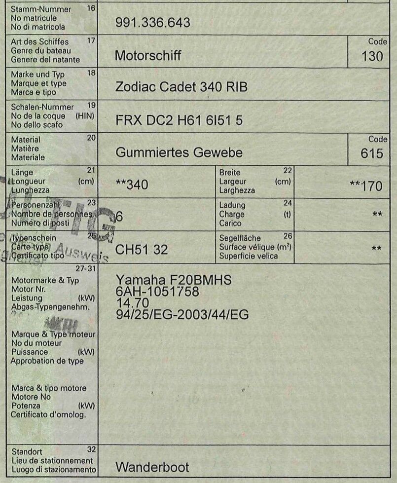 Angebot gilt für Motorschiff mit AnhängerFahrzeugausweise von Boot und Anhänger beachten2 aufbereitete Ersatzpropeller für Motor vorhandeninkl. 2 Ruderpaddels und Transporträder (gemäss Foto)Schiff ca. 150 Betriebsstunden