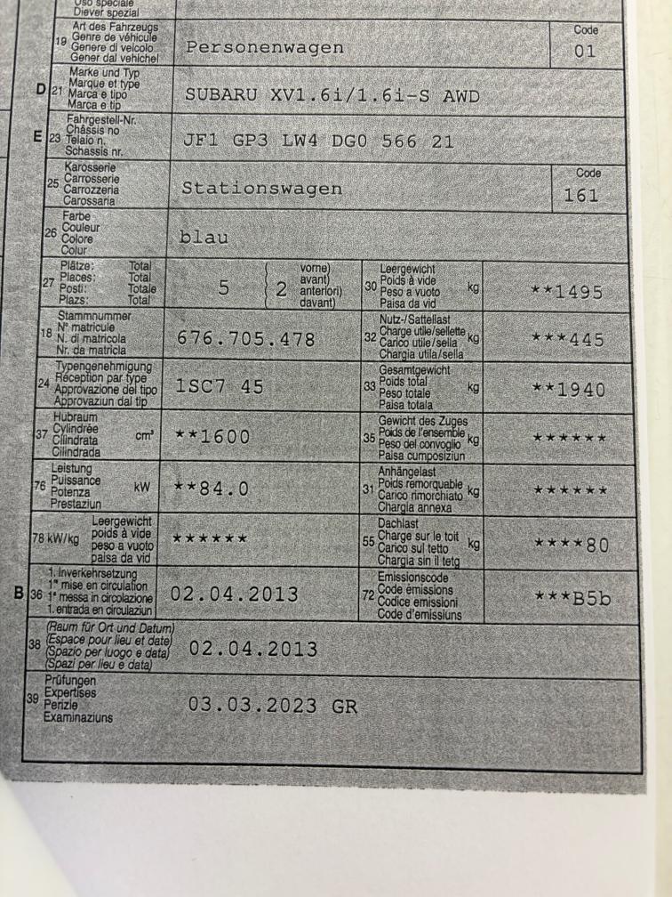 SUBARU XV1.6i/1.6i-S AWD