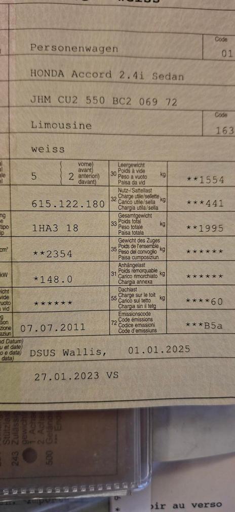 Honda Accord Typ S zu verkaufen. Service wurde im Januar durchgeführt. Motorleuchte brennt. Fahrzeug startet und fährt normal. Ansonsten wurde kein Fahrzeugtest durchgeführt Rost an beiden Schwellern vorne (gemäss Fotos) Flugrost Carrosserie