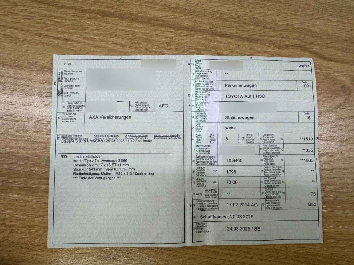 Gepäcknetz(e), Sitze: Vordersitze heizbar, Innenspiegel automatisch abblendbar, Wärmeschutzverglasung, Ausstiegsleuchten in den Türen, Sitze mit Schleudertrauma-Schutzsystem, Tageskilometerzähler, Elektrische Fensterheber vorne + hinten, Lenkrad: Lenkrad, Schaltknauf und Handbremshebel Leder, ISOFIX Kindersitzvorrichtung, Sonnenblende rechts, Haltegriffe für Beifahrer und Fondpassagiere, Polster: Stoff-Ausstattung, Parksensoren vorne und hinten lackiert, Heckscheibenheizung, Multifunktionsanzeige, Kopfstützen vorne höhenverstellbar, Wassertemperaturanzeige, Räder: Leichtmetallfelgen 17J mit Pneu, Getriebe: Stufenloser Automat, Gurtkontrolle, Klima: 2-Zonen-Klimaautomatik, Aussenspiegel rechts und links beheizt, elektrisch verstell- / und einklappbar, Licht: Nebelschlussleuchte, Lackierung: Uni-Lackierung, Räder: Reifenreparatur-Set (Tire Fit), Aussentemperaturanzeige, Airbag: Seitenairbag für Fahrer und Beifahrer, Media: Multimedia Audiosystem Toyota Touch, Rückspiegel innen, LED Blinker im Aussenspiegel, Assist: Parksensoren hinten lackiert, Radio/CD-Player mit MP3 und Fernbedienung am Lenkrad, Scheibenwischer vorne mit Intervall, Einstiegsschienen, Airbag: Window-Kopfairbags, Stabilitäts- und Traktionskontrolle (VSC und TRC), Tempomat mit Geschwindigkeitsbegrenzer, Ablagefach im Kofferraum, Make up-Spiegel rechts, Servolenkung, Sonnenblende links, Bremsassistent (BAS), 4 Scheibenbremsen, Smart Entry, Bodenabdeckung im Laderaum, Seitenaufprall-Schutzsystem, Laderaumabdeckung, Leuchtweitenregulierung von innen, Gurtstraffer mit Gurtkraftbegrenzer vorne, Licht: Halogenscheinwerfer, Airbag: Knie-Airbag für Fahrer, Cupholder vorne und hinten, Licht- und Regensensor, Licht: Umgebungsausleuchtung (Follow me home), Make up-Spiegel links, Getönte Scheiben, Media: USB+AUX-Anschluss, Airbag: Airbag Fahrer und Beifahrer, ABS, EBD elektronische Bremskraftverteilung, Digital Uhr, Assist: Berganfahrhilfe (Hill Assist Control - HAC), Ablagen in den Türen, Kindersicherung an den hinteren Türen, 3 Kopfstützen hinten, Sitze: Fahrersitz höhenverstellbar, Katalysator geregelt, Drehzahlmesser, Media: 4 Lautsprecher, Dachreling silber, Drittes Bremslicht LED, UV-absorbierende Verglasung, Tankdeckel-Entriegelung von innen, Airbag: Airbag Beifahrer deaktivierbar, Aussenspiegel elektrisch einklappbar, Media: Digitaler Radioempfang (DAB/DAB+), Stossstangen, Aussenspiegel und Türgriff in Wagenfarbe, Sitze: Rücksitzlehne geteilt abklappbar, Licht: LED-Tagfahrlicht, 3-Punkt-Sicherheitsgurte auf allen Plätzen, Licht: Nebelscheinwerfer, Lenkrad: Lenkrad längs- und höhenverstellbar, Wegfahrsperre elektronisch, Zentralverriegelung mit Fernbedienung, Heckdiffusor, Kopfstützen hinten höhenverstellbar, Sitze: Beifahrersitz höhenverstellbar, Mittelkonsole mit Ablagefach