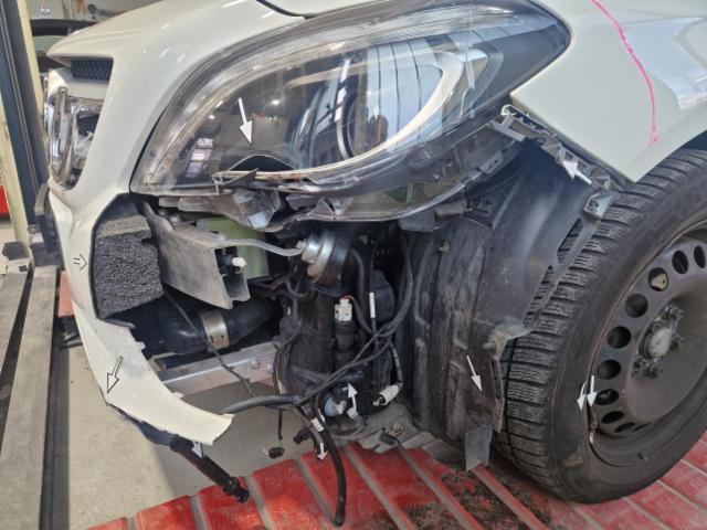 Front eingedrückt. Front links eingedrückt. Front rechts eingedrückt. Kotflügel vorne rechts und links eingedrückt. Frontblech/Maskenblech eingedrückt.