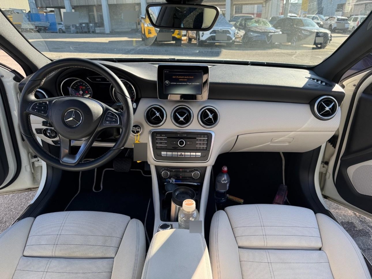 Frontscheibe Verbundglas, Reiserechner, Antriebsschlupfregelung (ASR), Crash-Sensor, Make up-Spiegel links, Licht: LED Blinker im Aussenspiegel, Crashaktive Notbeleuchtung, Gurtkontrolle, Katalysator geregelt, Kindersicherung an den hinteren Türen, Antiblockiersystem (ABS), Airbag: Knie-Airbag für Fahrer, Sitze:ISOFIX-Befestigungspunkte für Kindersitz an den äusseren Rücksitzen, Geräusch- und Wärmeschutzverglasung, Bremsbelagverschleiss, Sitzbelegungserkennung für Beifahrersitz, Scheibenwischer vorne mit Intervall, Make up-Spiegel rechts, USB-Anschluss, Licht: Nebelschlussleuchte, Licht:Adaptives Bremslicht, Ablagen in den Türen, Wartungsintervall-Anzeige, Elektrische Fensterheber vorne + hinten, Zentralverriegelung mit Fernbedienung und automatischer Türverriegelung, Assist:ADAPTIVE BRAKE mit HOLD-Funktion und Berganfahrhilfe, Heckscheibenwischer, Türgriffe aussen in Wagenfarbe, Assist:COLLISION PREVENTION ASSIST (Kollisionswarnung), Klimaanlage manuell, mit Pollenfilter, ECO Start-Stopp-Funktion, Reifenreparatur-Set (Tire Fit), Airbag: Window-Kopfairbags, Parameterlenkung mit geschwindigkeits- abhängiger Lenkkraftunterstützung, Sitze: 3-Punkt-Sicherheitsgurte auf allen Plätzen, Steckdose 12-Volt- vorne, Bremsassistent (BAS), Drittes Bremslicht LED, Licht: Fahrlichtassistent (automatisches Fahrlicht), Airbag: Airbag Fahrer und Beifahrer, Fahrersitz höhenverstellbar, Airbag: Seitenairbag für Fahrer und Beifahrer, Sitze:Kopfstützen hinten höhenverstellbar, Höhenverstellbare Gurten vorne, Tagfahrlicht, Multifunktionsanzeige, Nichtraucherausführung, Heckscheibenheizung, Sitze:Gurtstraffer vorne, Lenkrad längs- und höhenverstellbar, Assist:Reifendruck-Kontrollanzeige, Assist: ATTENTION ASSIST (Aufmerksamkeitsassistent), Wegfahrsperre elektronisch, Lackierung: Uni-Lackierung, Aussentemperaturanzeige, Sitze: Rücksitzlehne geteilt abklappbar, Fahrwerk:Komfortfahrwerk, Radiovorbereitung, Antenne, Entstörung und 6 LS, Auspuffanlage mit 2 Endrohren, Elektronisches Stabilitäts-Programm (ESP), Stossstangen in Wagenfarbe, Befestigungsösen im Laderaum, Kontrollanzeige für Lampenausfall, Abgedunkelte Seiten- und Heckscheibe, Armauflage vorne, verschiebbar, Assist:Aktiver Parkassistent inkl. PARKTRONIC, Aussenspiegel schwarz, Beleuchtetes Handschuhfach, Dekor: Bordkantenzierstab in Chrom, Dekor: Dachhimmel schwarz, Dekor:Türmittelfelder in Ledernachbildung ARTICO, Getriebe: Sequentielles 7-Gang-Getriebe mit Automatikfunktion, Kühlergrill schwarz glänzend, Leichtmetallräder im 5-Doppelspeichen- Design 18J schwarz lackiert, Lenkrad:Leder-Multifunktionslenkrad im 3-Speichen-Design, Licht: LED High Performance-Scheinwerfer, Media:Garmin MAP PILOT Navigationsmodul, Polsterung Ledernachbildung ARTICO / Larochette, Sitze:Sitzkomfort-Paket, Sitze:Sportsitze vorne, Wärmedämmendes Glas, ab B-Säule dunkel getönt, Zierelemente Karooptik
