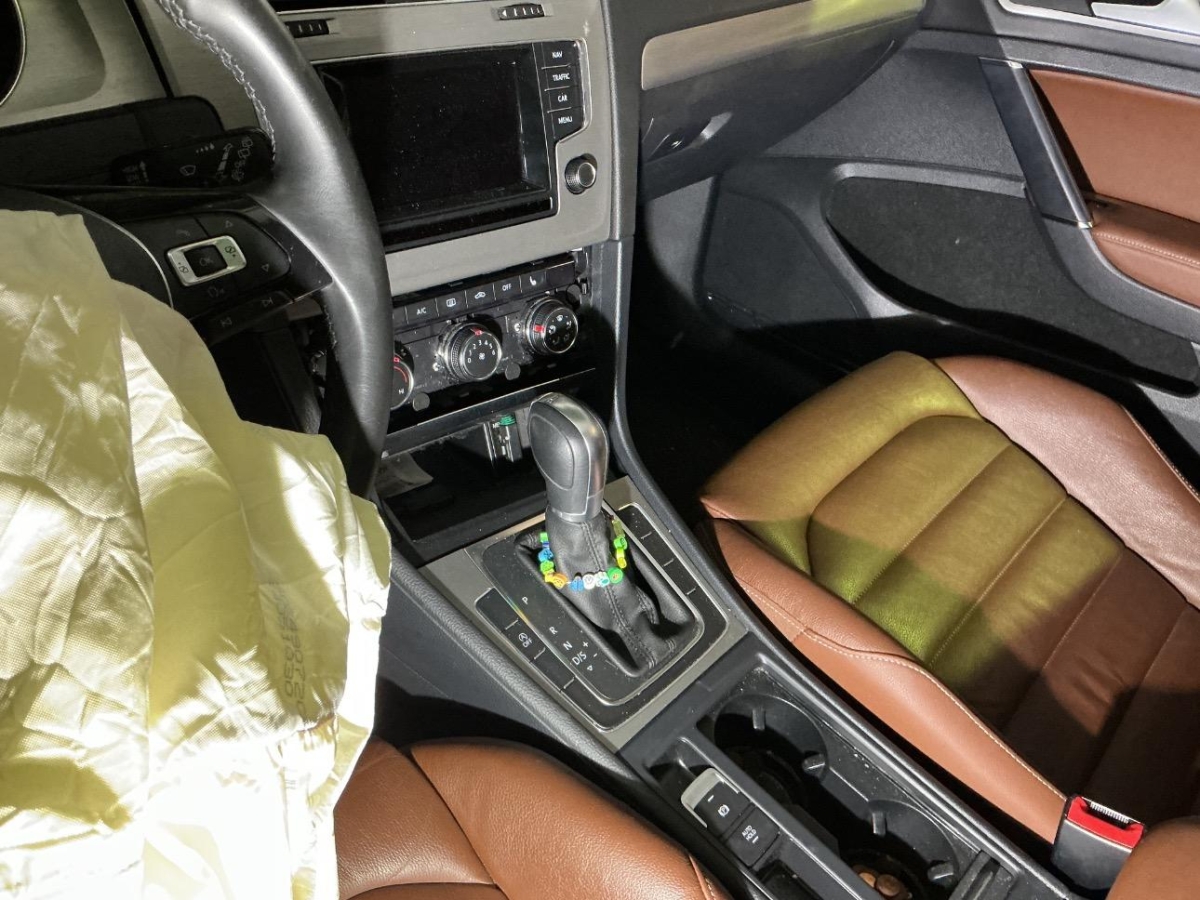 Airbag ausgelöst, Front, Frontscheibe, Rad vorne rechts, Radaufhängung vorne links, Radhaus vorne links, Seite links