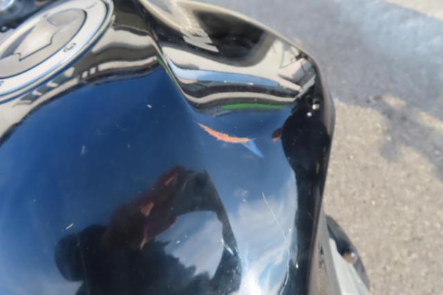 Kraftstofftank deformiert. Kraftstofftank Lackbeschädigung. Sitzpolster gerissen.