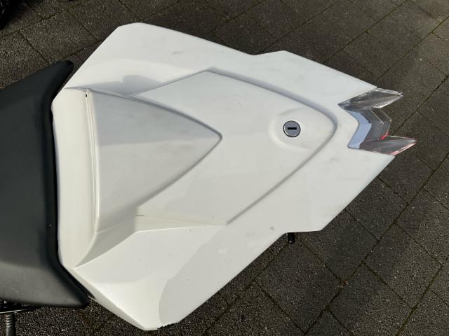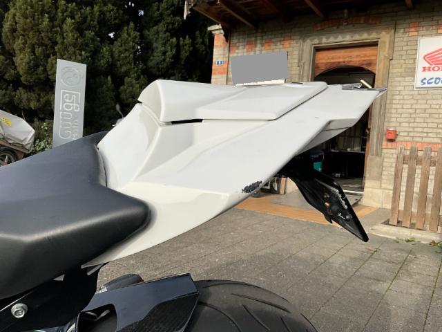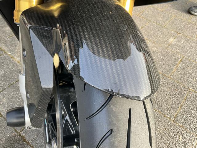 Auspuffanlage Akrapovic, Fussrasteranlage, Racing Scheibe, Sturzpads, Bremshebel und Kupplungshebel, Kennzeichenhalterung kurz, Felgenaufkleber, Lenkergewicht, Carbon Vorderradabdeckung, Carbon Kotflügel mit Kettenschutz, Carbon Bugspoiler links und rechts, Tankpad, Blinker, Seitenspiegel, Soziusabdeckung, Sturzpas vorder und hinterachse