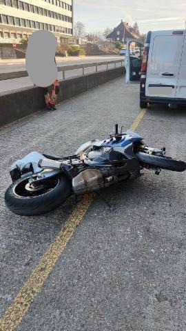Schutzblech vorne defekt. Vorderrad beschädigt. Gabel beschädigt. Lenker verbogen.