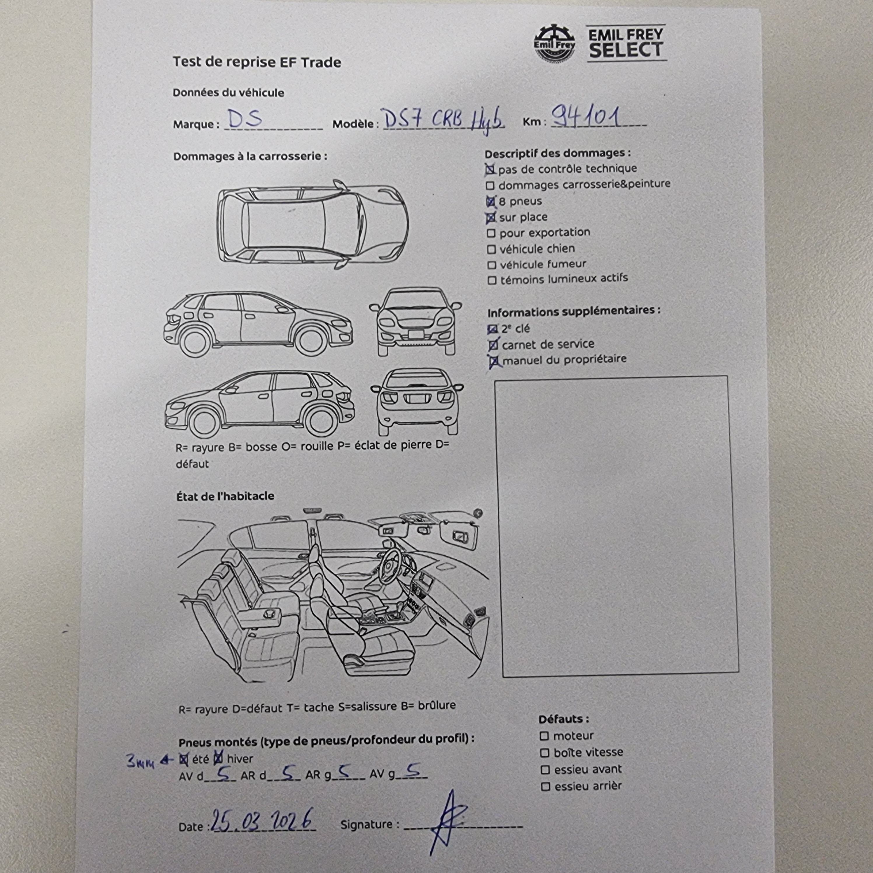 Pas de contrôle technique (essai en atelier) effectué Huit pneus. Motor Getriebe Vorderachse Hinterachse Airbags ausgelöst: 0 unbekannt ( Abfallcode 16.01.04ak )