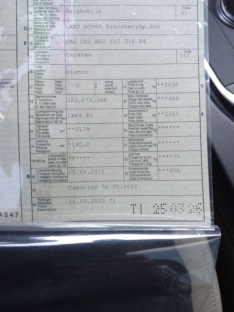 Non è stata effettuata alcuna ispezione tecnica (prova in officina) Vari danni alla carrozzeria/verniciatura (vedi foto) Parabrezza scheggiato Pelle sedile guida screpolata Pannello porta lato guida usurato Poggia testa posteriore centrale con pelle graffiata Solo una chiave con telecomando Motor Getriebe Vorderachse Hinterachse Airbags ausgelöst: 0 Nein ( Abfallcode 16.01.04ak )