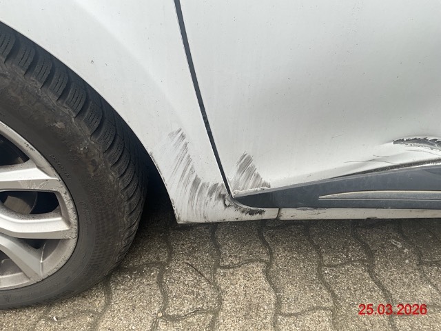 Beschreibung der Schäden: Seite Links: beide Türen verbeult, Kotfügel verkratzt Vorbestandene Schäden: Hinten rechts: Seitenwand, Türe hinten verbeult Vorne mitte: Stosstange verbeult Hinten links: Stosstange verkratzt Alle Felgen verkratzt, ohne Reifen im Auto