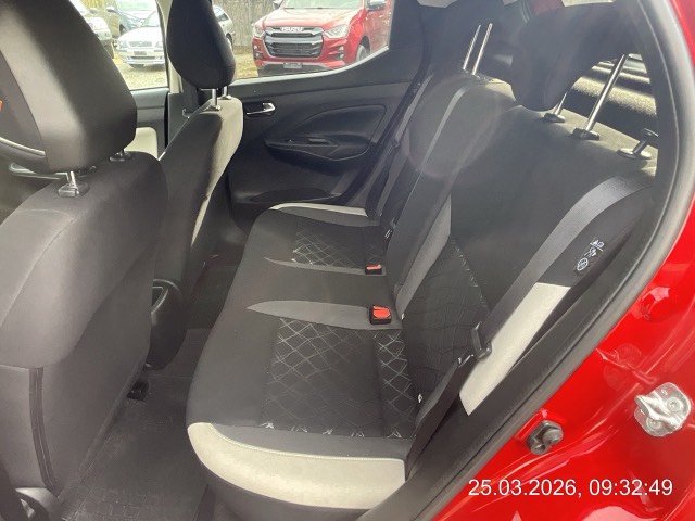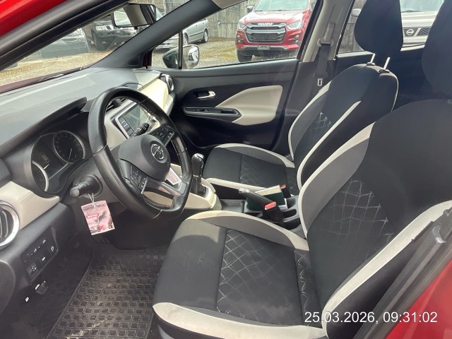 Lenkrad: Sportlenkrad, Sonnenblenden mit Make-Up-Spiegel auf Fahrer- und Beifahrerseite, Airbag: Airbag Beifahrer deaktivierbar, Assist: Geschwindigkeitsbegrenzer, Bordcomputer mit 5''-Farbdisplay, Scheiben verdunkelt ab B-Säule, Lenkrad: Lenkrad längs- und höhenverstellbar, Fensterheber vorne elektrisch, mit Komfortfunktion für Fahrerseite, Servolenkung geschwindigkeitsabhängig, Garantie: Garanie 3 Jahre oder 100'000 km (ab 1. Inv.), Katalysator geregelt, Media: Bluetooth-Schnittstelle für Mobiltelefon und Audiostreaming, Steckdose, 12 Volt, vorne, Assist: Intelligenter Autonomer Notbrems-Assistent mit Kollisionswarnsystem, Dekor: Dekoreinsätze an Schaltknauf in Chrome, Airbag: Fahrer- und Beifahrerairbag, Kopfairbags und Seitenairbags vorne, Assist: Antiblockiersystem (ABS) mit elektronischer Bremskraftverteilung (EBD) und NISSAN Brems-Assistent, Aussenspiegel in Wagenfarbe, elektrisch anklappbar, mit integrierten LED-Blinklichtern, Getriebe: 5-Gang-Getriebe, Nebelschlussleuchte, Räder: 16"-Flex-Felgen GENKI (zweifarbig) mit Bereifung 195/55 R16, Drittes Bremslicht, Laderaumabdeckung, Dekor: Instrumententafel in Kunstleder, beige - oben weich unterschäumt, Lenkrad: Lenkradfernbedienung für: - Audiosystem - Bluetooth-Schnittstelle für Mobiltelefone - Bordcomputer, Sitze: Vordersitze heizbar, INTELLIGENT KEY mit Start-/Stopp-Knopf, Sitze: Fahrersitz höhenverstellbarr, Stossfänger Stylingelemente für Front und Heck, Seitenleisten und Spiegelkappen wahlweise in Schwarz oder Chrome, Drehzahlmesser, Assist: Tempomat, Kofferraumbeleuchtung, Licht: Fahrlichtautomatik, Warnsignal für nicht angelegte Sicherheitsgurte, Dachspoiler, Assist: Berganfahr-Assistent, Wegfahrsperre elektronisch, Garantie: Garanie 3 Jahre Lackgarantie, Garantie: 12 Jahre Garantie gegen Durchrostung, Media: Dachantenne, 300 mm, Heckscheibenheizung, Räder: Reifenreparatur-Set, Media: Digitaler Radioempfang (DAB/DAB+), Assist: Rückfahrkamera in Farbe, Sitze: Rücksitzbank asymmetrisch (60:40) umklappbar, Zentralverriegelung mit Funkfernbedienung, Elektronisches Stabilitäts-Programm (ESP), Media: USB-Schnittstelle, iPod-Gateway, Lackierung: Uni-Lackierung, Dekor: Kniepolsterung an der Mittelkonsole in Kunstleder, beige, Licht: LED-Tagfahrlicht, Räder: Reifendruck-Kontrollsystem (TPMS), Dekor: Türinnenverkleidung vorne mit Einsätzen in Kunstleder, beige, Media: Audiosystem - MP3-Wiedergabe - 7"-Farbdisplay mit Touchscreen - 4 Lautsprecher in den Vordertüren und in der A-Säule - AUX-Eingang - Apple CarPlay und Android Auto, 3-Punkt-Sicherheitsgurte auf allen Plätzen, Aussenspiegel beheizbar, Heckscheiben-Wisch-/Waschanlage, Assist: Warnblinkautomatik, Dekor: Türinnengriffe verchromt, Polster: Sitzbezüge Stoff, Stopp-/Start-System, Assist: Regensensor für Scheibenwischer vorne, Assist: Chassis Control Technologie (CCT) Aktive Spurkontrolle, Aktive Fahrkom- fortregelung, Licht: Halogen-Hauptscheinwerfer, Assist: Verkehrszeichenerkennung, ISOFIX-Kindersitz-Befestigungspunkte vorne auf dem Beifahrersitz und hinten auf den äusseren Plätzen, Kopfstützen auf allen 4 Hauptplätzen, manuell einstellbar, Lenkrad, Schalthebelgriff und Handbremshebelgriff in Leder, Türen: Türaussengriffe in Wagenfarbe lackiert, vorne - versteckte Griffe an den hinteren Türen in Schwarz, Licht: Nebelscheinwerfer, Ablagefach - in der Mittelkonsole - in den vorderen Türen - Getränkehalter vorne und hinten, Leseleuchten vorne