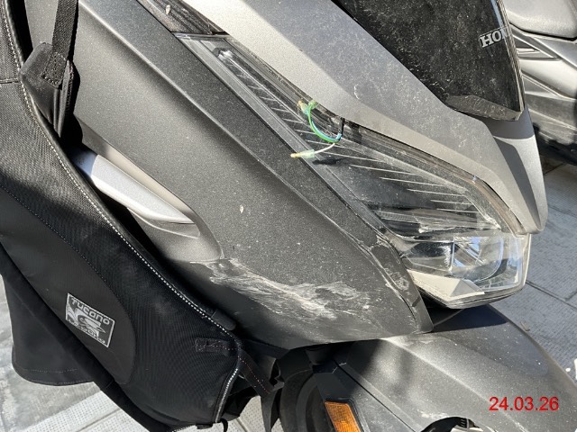 Choc avant droit puis chute côté gauche. Ensemble des carénages avant, phare, pare-brise, top case... - liste non exhaustive