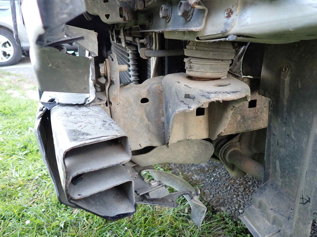 Pare-chocs AVG, phare AVG, calandre, aile AVG, choux d'aile AVG et susp. AVG endommagés