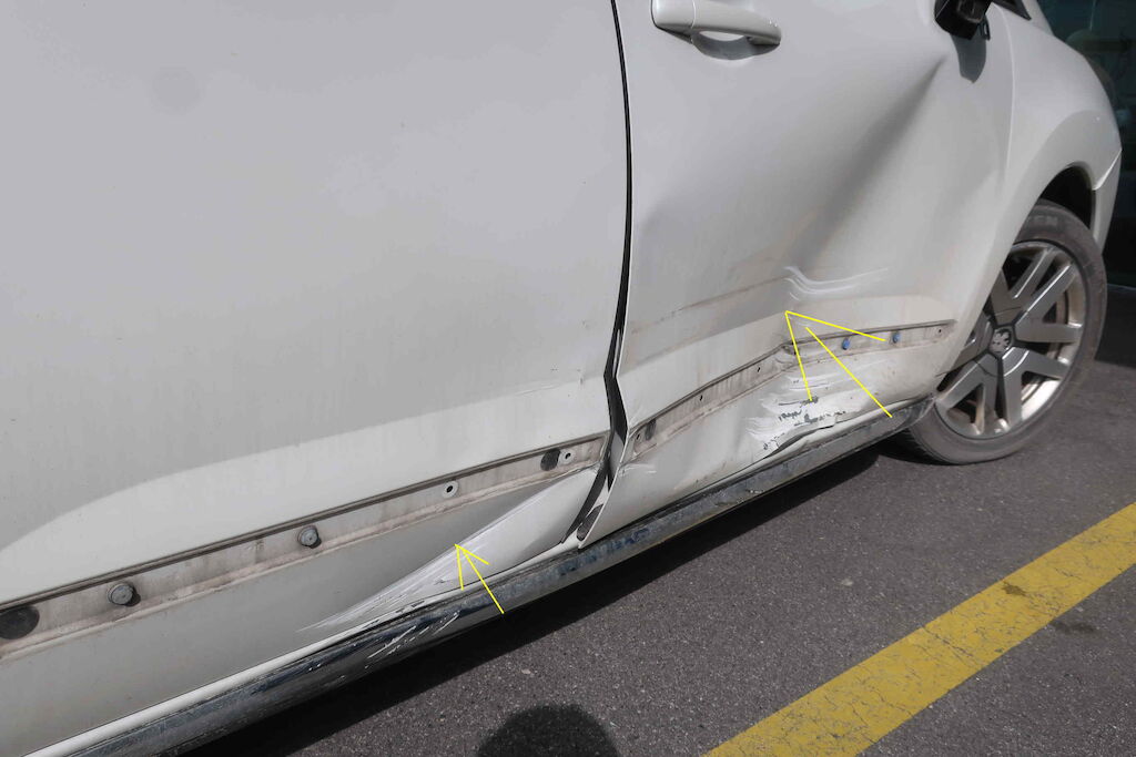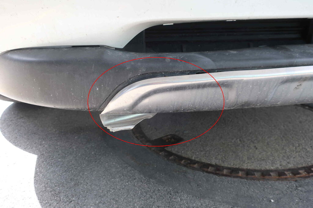 Div. Vorschäden:Seitenwand hi. re. beschädigtSchlussleuchte re. gerissenStossstange hi. beschädigtHeckklapppe deformiertSchlussleuchte li. beschädigtLackbeschädigung Stossstange & Kotflügel vo. li.Felgenrand vo. li. & re. beschädigtUnterfahrschutz vo. re. beschädigtStossstange vo. re. ausgehängt & KratzerLackbeschädigung & Delle MotorhaubeBremse vo. Eisen auf EisenElektrische Handbremse defektInnen sehr schmutzig