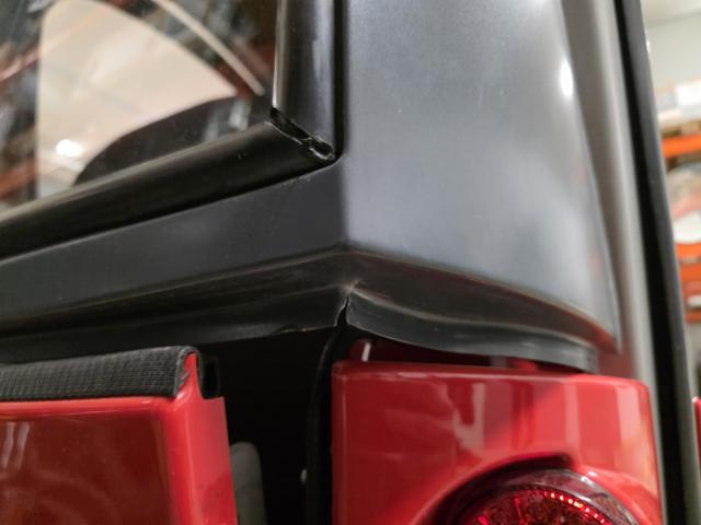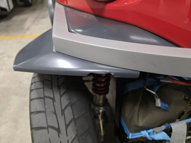 Linke Seite beschädigt. Verschalung unten links gebrochen.