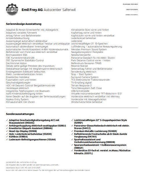 Ausstattungsliste von System gezogen und ohne Gewähr