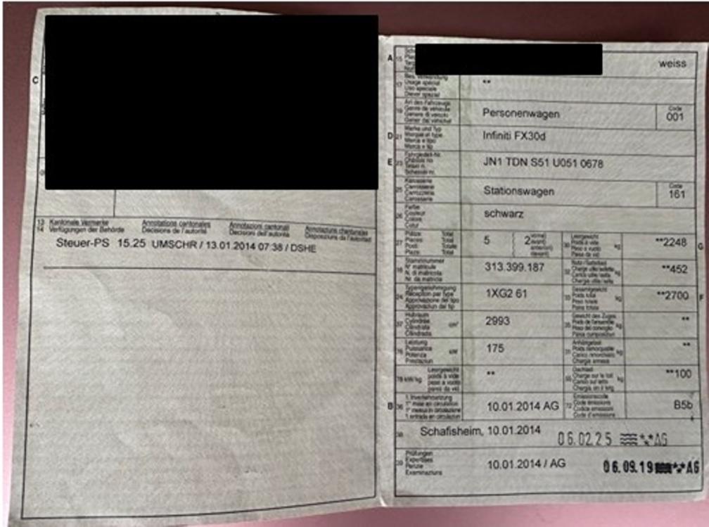 Fahrzeug befindet sich um Kundenbesitz, deshalb keine technische Prüfung.