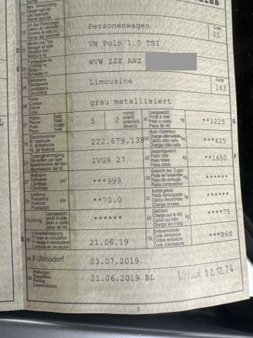 Fahrzeugdokumente vorhanden.