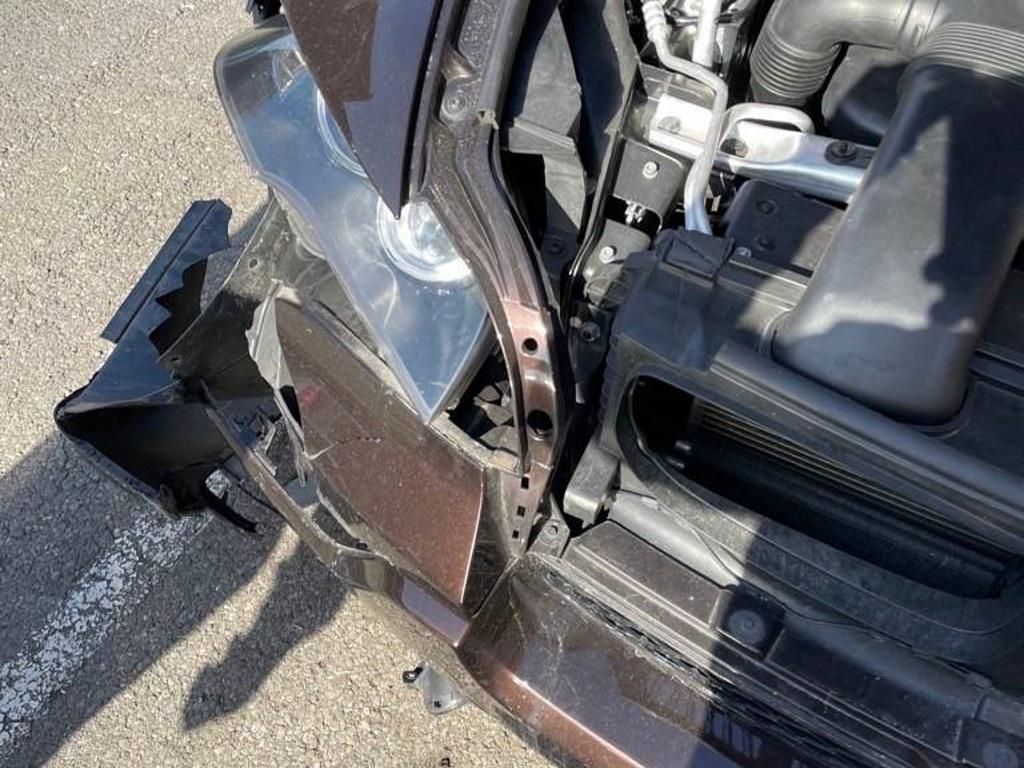 Achsträger, Airbag ausgelöst, Armaturenbrett, Federbein vorne rechts, Front, Front rechts, Frontblech, Frontscheibe, Gurtstraffer ausgelöst, Kabelstrang, Kopfstützen ausgelöst, Lenkung, Rad vorne rechts, Radaufhängung vorne rechts, Radhaus vorne rechts, Scheinwerfer rechts, Stosstange vorne, Vorderachse