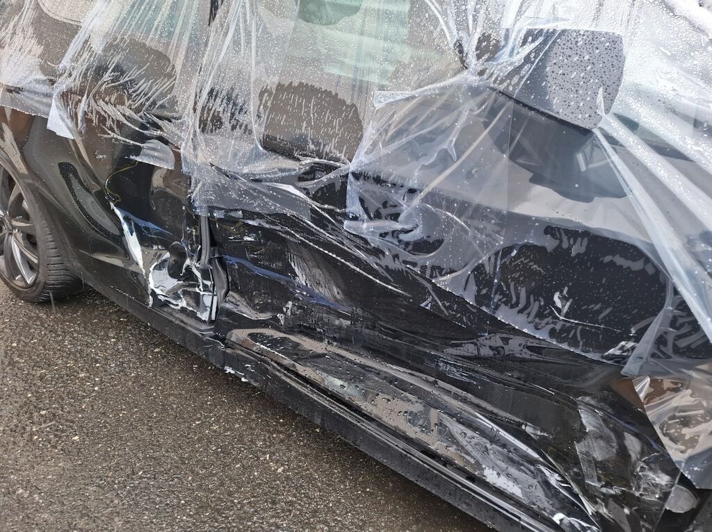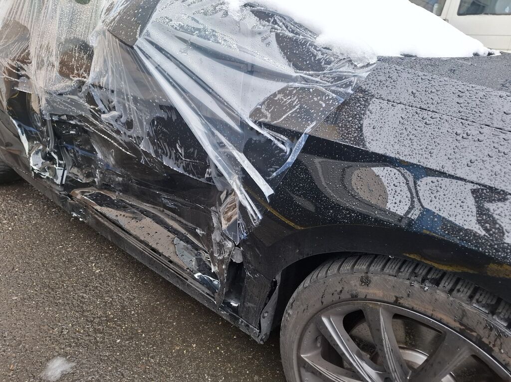 Türe vorne und hinten, Schweller, A-Säule, B-Säule und Seitenwand eingedrückt. Gurtraffe, Seitenairbag rechts und Kopfairbag rechts ausgelöst. Motor Getriebe Vorderachse Hinterachse Airbags ausgelöst: 2 Nein ( Abfallcode 16.01.04ak )