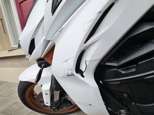 Linke Seite beschädigt. Ist auf die linke Seite gefallen. Verschalung oben links gebrochen. Verschalung unten links verkratzt. Verschalung hinten links verkratzt.