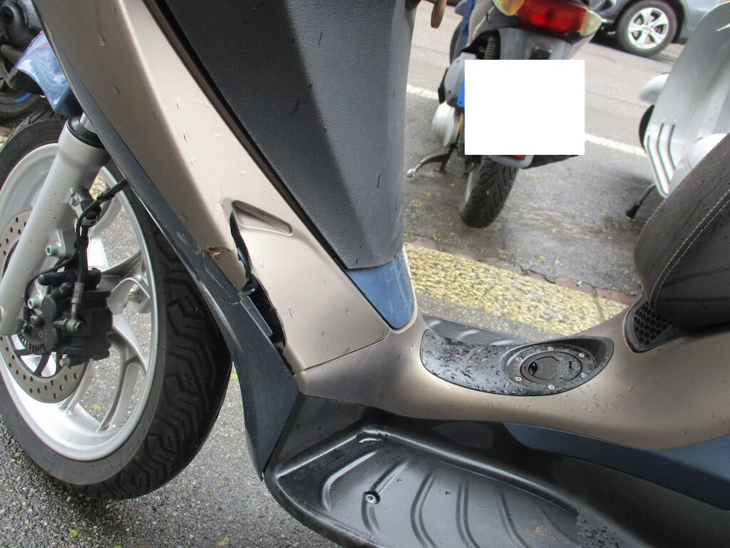 Der Roller weist Schäden an der Seite links auf. Der Kotflügel vorne ist gestaucht. Die Seitenverschalung VL, das Trittbrett, der Rückspiegel L und die Fussraster sind angeschürft. Das Top-Case ist zerkratzt. Motor Getriebe Vorderachse Hinterachse Airbags ausgelöst: 0 unbekannt ( Abfallcode 16.01.04ak )