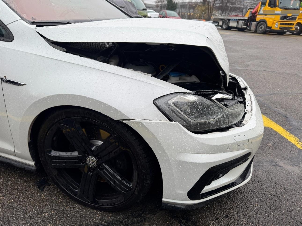 Airbag ausgelöst, Diverse Anbauteile, Front, Frontscheibe, Gurtstraffer ausgelöst, Klimakühler, Kotflügel links, Kotflügel rechts, Kühler, Kühlgitter, Ladeluftkühler, Motorhaube, Scheinwerfer links, Scheinwerfer rechts, Schlossträger, Stosstange vorne, Türe vorne links
