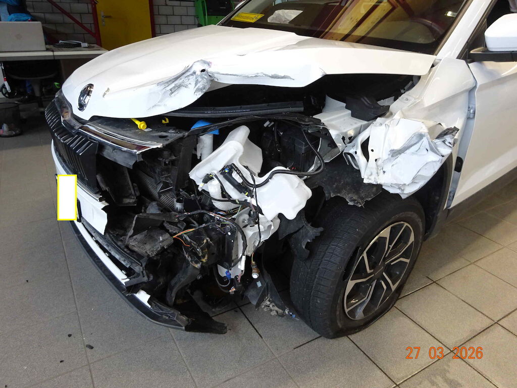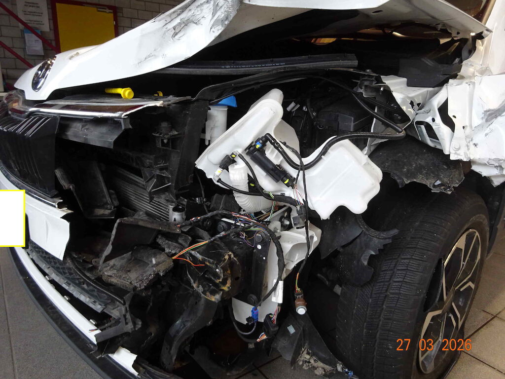 Offensichtlicher Totalschaden: Auffahrunfall vo und hi beschädigt Vorne und hi stark beschädigt Kopfairbag li und re ausgelöst Fahrer und Beifahrerairbag ausgelöst Knieairbag li ausgelöst Motor läuft noch Motor Getriebe Vorderachse Hinterachse Airbags ausgelöst: 5 unbekannt ( Abfallcode 16.01.04ak )
