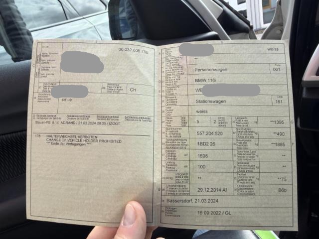 Fahrzeugdokumente vorhanden.