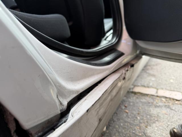 Rechte Seite beschädigt. Anstoss rechts im Bereich der C-Säule. Schweller rechts ist eingedrückt. Tür hinten rechts ist eingedrückt.