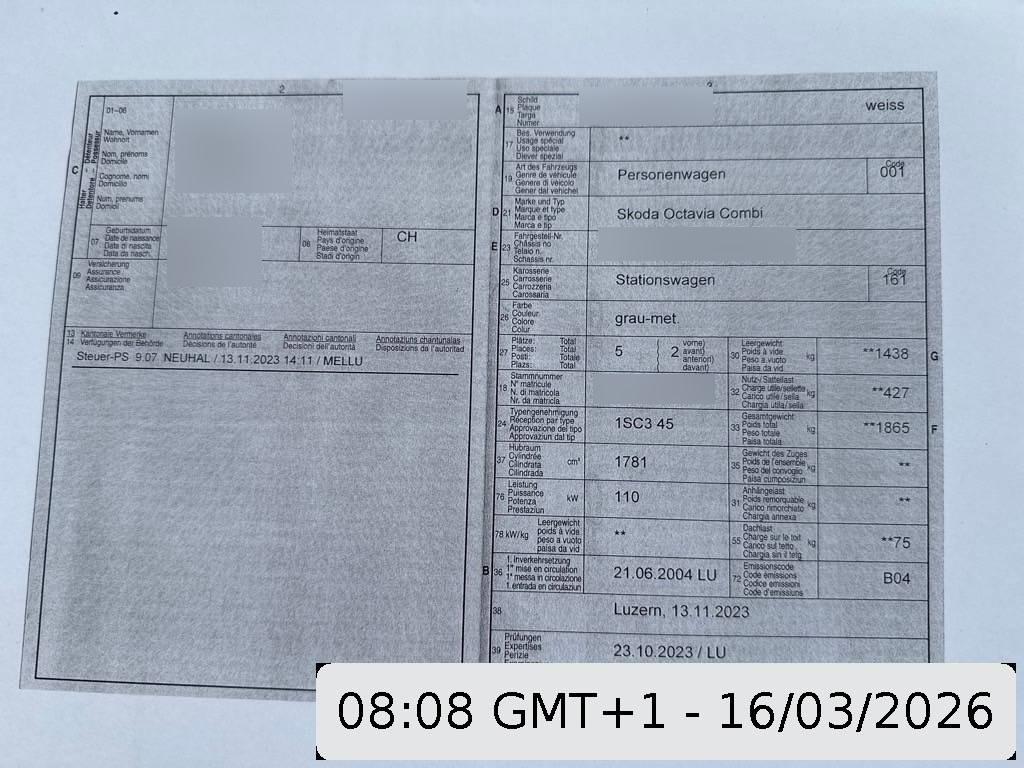 Abschliessbare Radschrauben, Wassertemperaturanzeige, Digital Uhr, 4 Leichtmetallfelgen 15J mit Pneu, Grün getönte Scheiben, Sitze: Kreuzstützen für Vordersitze verstellbar, Lenkrad längs- und höhenverstellbar, Leseleuchten vorne, Gurtstraffer vorne, Regensensor für Scheibenwischer vorne, Nebelschlussleuchte, Sitze: Mittelarmlehne vorne, Airbag: Seitenairbags, Beleuchtetes Handschuhfach, Heckscheibenheizung, Zentralverriegelung mit Fernbedienung, Katalysator geregelt, Ladeboden variabel, Radiovorbereitung, Antenne, Entstörung und 8 LS, Leuchtweitenregulierung von innen, Zweiklanghorn, Tageskilometerzähler, Ablagefach im Kofferraum, Assist: Elektronische Differentialsperre (EDS), Licht: Nebelscheinwerfer, Klimatisierungsautomatik, Aussenspiegel rechts und links beheizbar und elektrisch verstellbar, Stossstangen und Aussenspiegel in Wagenfarbe, Höhenverstellbare Gurten vorne, Leseleuchten hinten, Sitze: Rücksitzlehne geteilt abklappbar, Seitenschutz-Zierleisten, Radio/CD mit Symphony, Airbag: Airbag Fahrer und Beifahrer, Pollenfilter (Staubfilter), Servolenkung, Mobiltelefon-Vorbereitung, Sitze: Vordersitze heizbar, Heckscheiben-Wisch-/Waschanlage, Kopfstützen hinten, ISOFIX Kindersitzvorrichtung, Laderaumabdeckung, Antiblockiersystem (ABS), Wegfahrsperre elektronisch, Sitze: Vordersitze höhenverstellbar, Getriebe: 5-Gang-Getriebe, Drehzahlmesser, Tagfahrlicht, Elektrische Fensterheber vorne + hinten, Dachreling, Sicherungsnetz für Ladegut, Drittes Bremslicht, Scheibenwischer vorne mit Intervall, Polster: Stoff-Ausstattung, Antriebsschlupfregelung (ASR), Bordcomputer, Mittelarmlehne hinten
