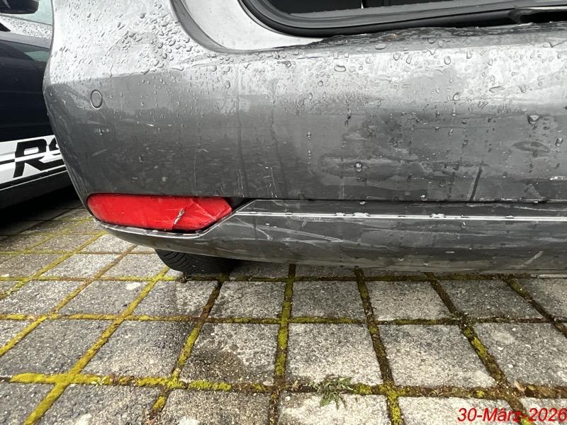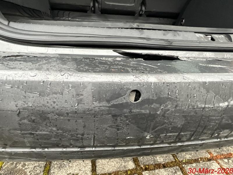 Heck: Der Heckdeckel, die Stossstange hinten sind deformiert mit Kratzer. Der PDS, der Reflektor sind gerissen. / Vorbestandene Schäden: Gebrauchsspuren