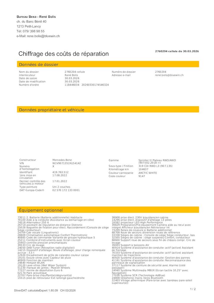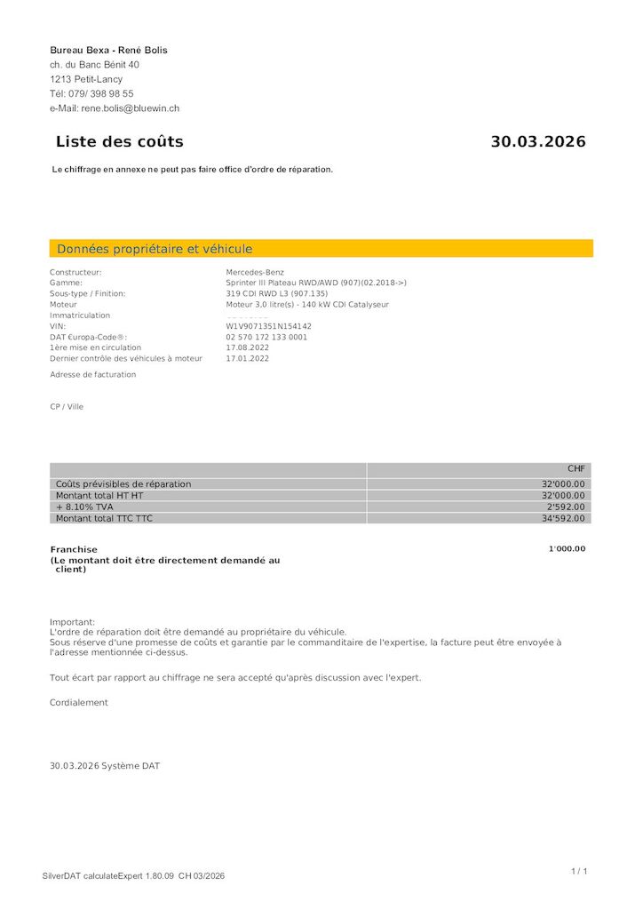 Moteur changé à 88'000 kmDivers dommages carrosserie véhicule professionnel.