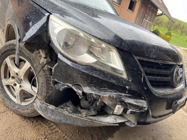 Vorderachse ist beschädigt. Risiko Lenkung.
