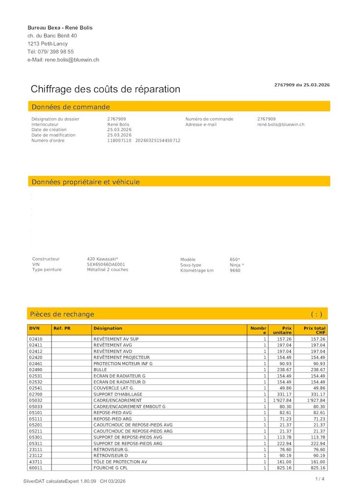 Châssis déformé Direction et suspension avant déformés. Guidon déformés. Leviers de freins déformés Carénages avant cassés. Jante avant cassée. Carter moteur frotté Motor Getriebe Vorderachse Hinterachse Airbags ausgelöst: 0 unbekannt ( Abfallcode 16.01.04ak )