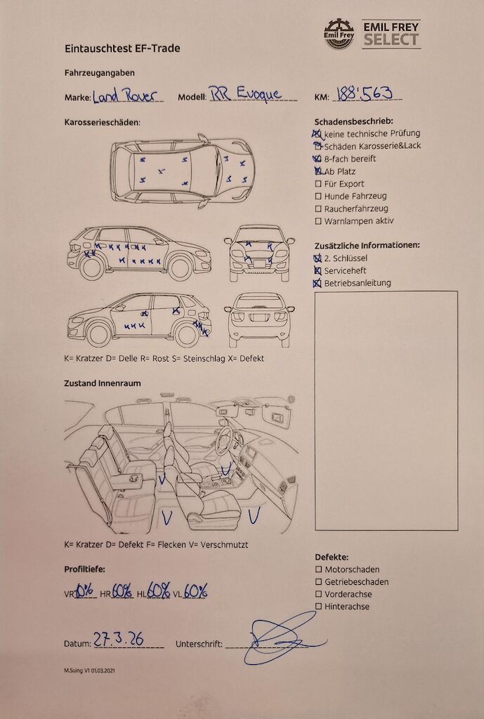 Keine technische Prüfung (Werkstatttest) vorgenommen Diverse Schäden an Karosserie/Lack. 8-fach bereift. Fahrzeug ab Platz, ohne Garantie und Aufbereitung. Motor Getriebe Vorderachse Hinterachse Airbags ausgelöst: 0 unbekannt ( Abfallcode 16.01.04ak )