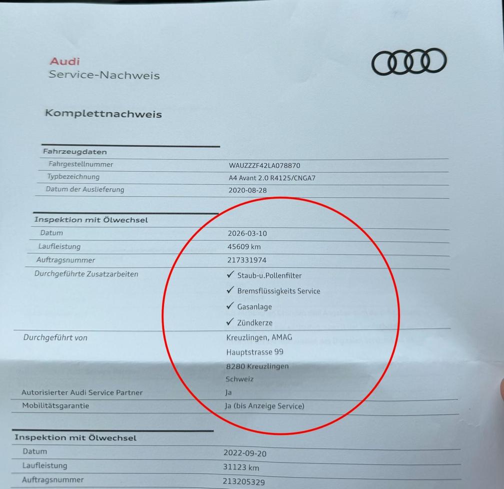 Professionelle Folierung in Grau. Originalfarbe Schwarz. Frisch ab grossem Service. Beiblatt für Felgen fehlt. Treibstoff Gas und Benzin.