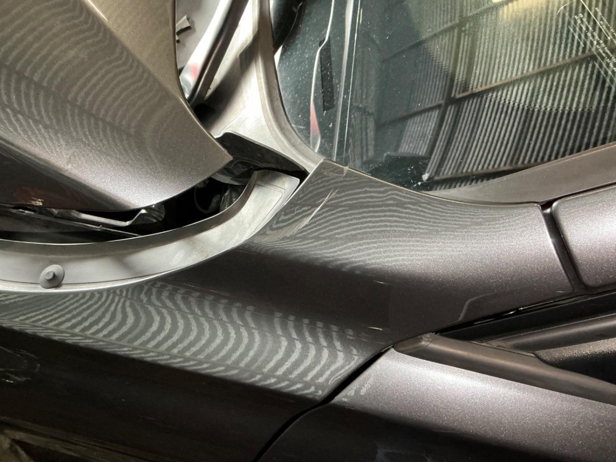 Das Fahrzeug hat rundum kleine Dellen, Beulen und Lackschäden, Hagelschaden, Kilometerstand geschätzt