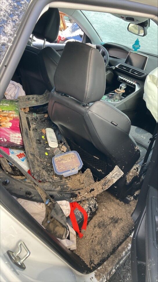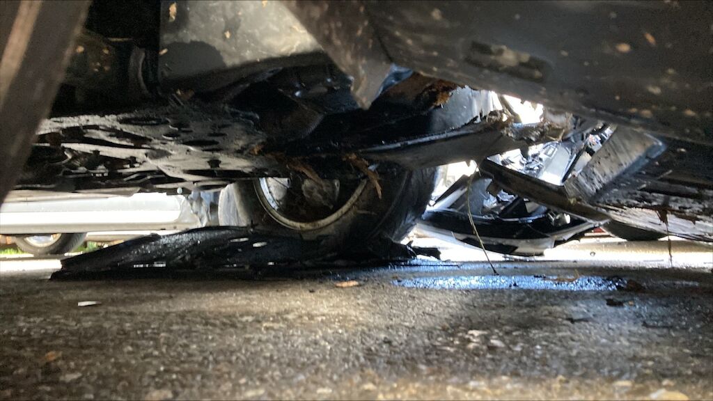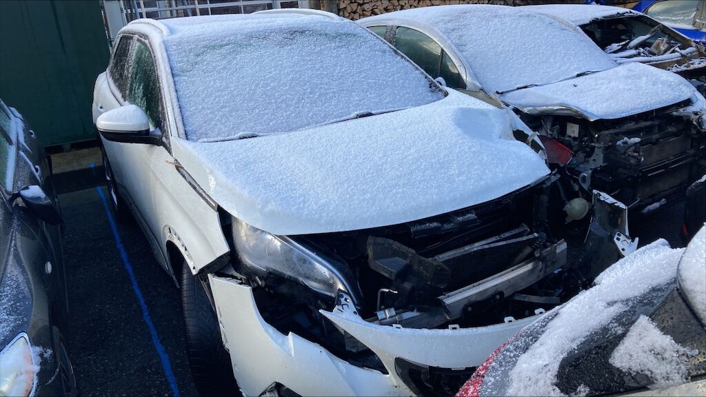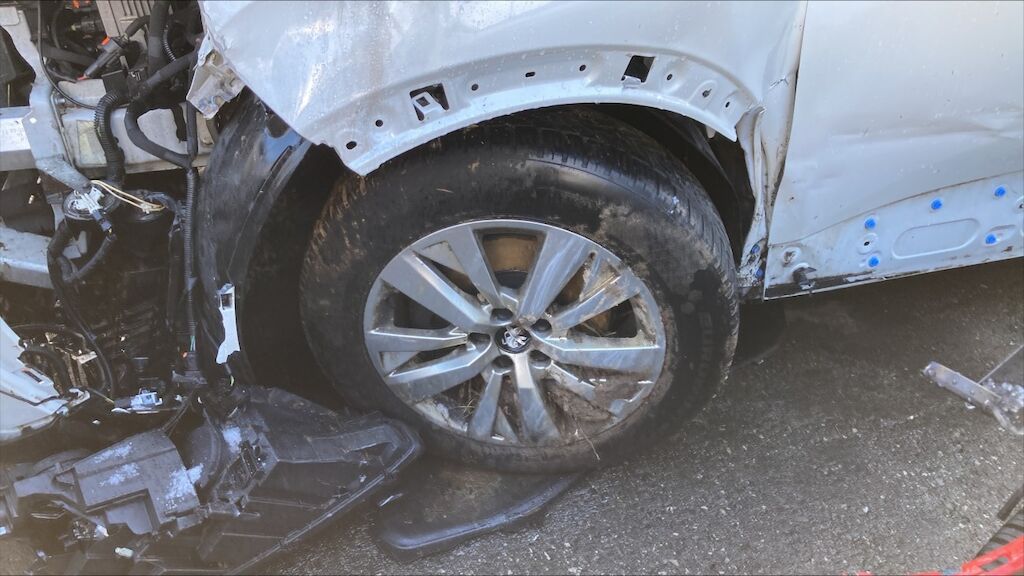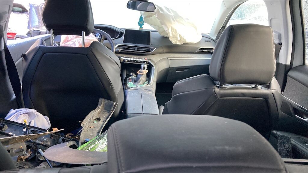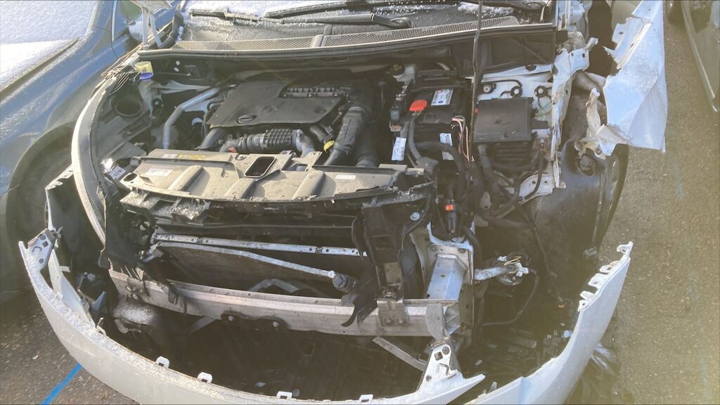 Zone avant: face avant, renfort, capot, aile gauche, radiateurs, berceau, moteur, phares, par choc choc fortement refoulés, mécanque gauche refoulée. Flanc gauche deux portes, bas de caisse, montants enfoncés, aile arrière pliée, phare cassé. Etat du moteur de la BV pas contrôlables, Intérieurs: ceintures déclenchées, deux airbags déclenchés. Motor Getriebe Vorderachse Hinterachse Airbags ausgelöst: 2 Nein ( Abfallcode 16.01.04ak )