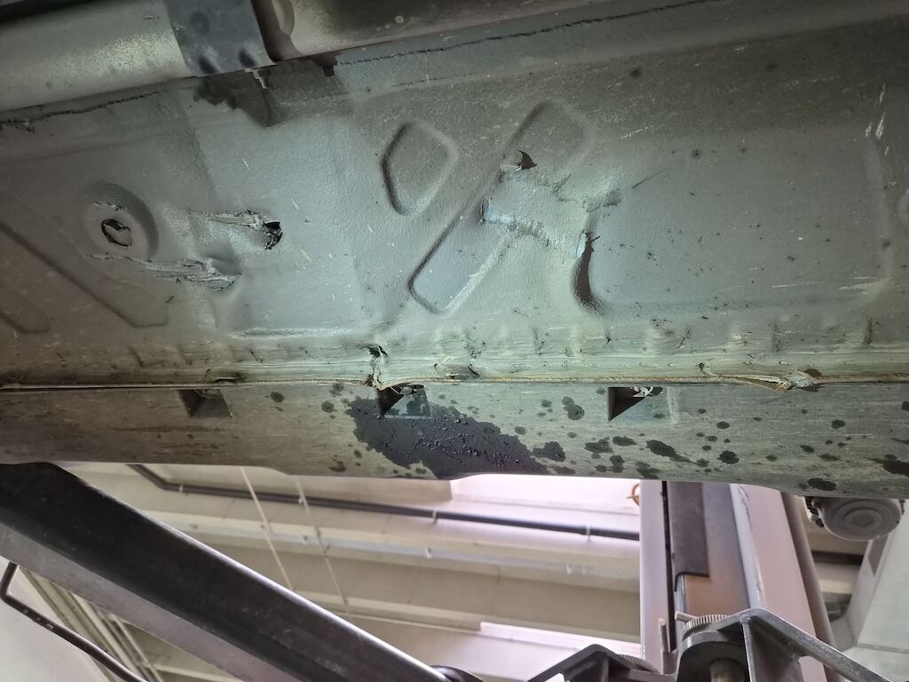 Unfallschaden durch Aufprall unterhalb des Fahrzeugs auf der rechten Seite mit Beschädigungen am Querträger, am Motorträger, am Bodenblech, am Hinterrad sowie diversen Anbauteilen Motor Getriebe Vorderachse Hinterachse Airbags ausgelöst: 0 Nein ( Abfallcode 16.01.04ak )