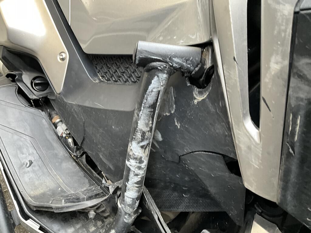 Roue AV, fourche, carénages flanc DR, plancher DR, levier DR, échappement, arceau de protection, poignée de maintient ARD endommagés. Motor Getriebe Vorderachse Hinterachse Airbags ausgelöst: 0 unbekannt ( Abfallcode 16.01.04ak )