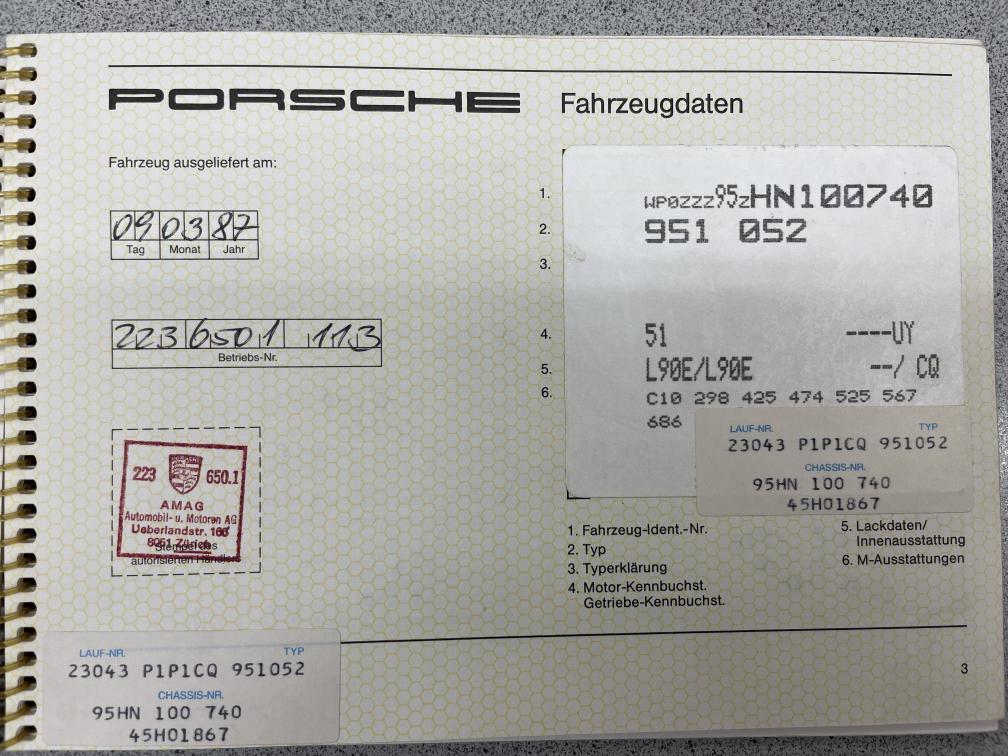 Schöner Klassiker zum fertigstellen. Ideal auch für Oldtimer-Rallyes. Dieser Porsche stand lange in einer trockenen Garage. Schweizer-Auslieferung mit AMAG Plakette, komplette Servicemappe vorhanden Über Fr.10'000.- wurden bereits investiert. Folgende Arbeiten wurden bereits gemacht: Beide Zahnriemen inkl. sämtlichen Laufrollen, beide Thermostaten, Keilriemen, sämtliche Filter, Zündkerzen, Bremsen vorne und hinten komplett, Kraftstoffpumpe, sämtliche Flüssigkeiten wurden gewechselt und viele kleinere Arbeiten wurden fachmännisch ausgeführt. Es wurden Porsche originale Ersatzteile verbaut. Fahrzeug fährt, schaltet einwandfrei. Was muss noch gemacht werden. Diese Antwort ist sicherlich nicht abschliessend und am Schluss je nach Ansicht des Betrachters. Was sicher gemacht werden muss ist: - Türe rechts muss noch ersetzt oder repariert werden (Ersatztüre wird mit gegeben) sämtliche Teile dazu wie die originale Türverkleidung werden mitgegeben - Karosserie benötigt etwas liebe (Fahrzeug hat kein Rost) --> Fotos - Innenspiegel fehlt - Fahrzeugaufbereitung Innen wie Aussen - neue Pneu, es gibt Zusätzlich noch die 4 originalen Magnesiumfelgen dazu (müssen noch aufbereitet werden) - Halter für die neue Starterbatterie fehlt - diverse Kleinigkeiten Muss in Villmergen AG abgeholt werden. Ab Platz ohne Garantie. Wandelung oder Minderung ausgeschlossen.