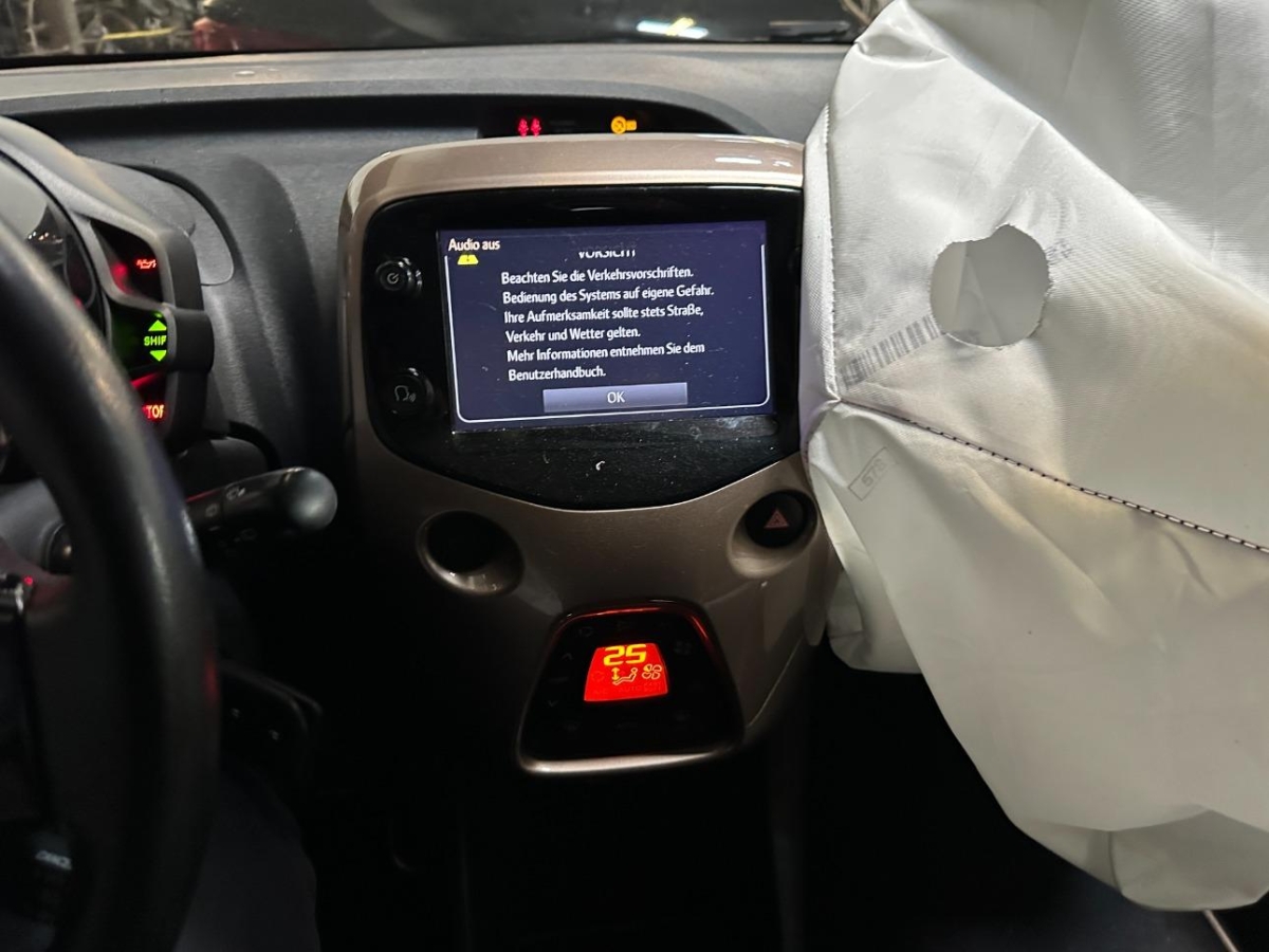 Airbag ausgelöst, Diverse Anbauteile, Front, Front links, Front rechts, Gurtstraffer ausgelöst, Interieur, Kabelstrang, Klimakühler, Kotflügel links, Kotflügel rechts, Kühler, Kühlgitter, Längsträger vorne links, Längsträger vorne rechts, Motorhaube, Motorlampe leuchtet, Scheinwerfer links, Scheinwerfer rechts, Schlossträger, Stosstange vorne, Türe vorne links, Türe vorne rechts