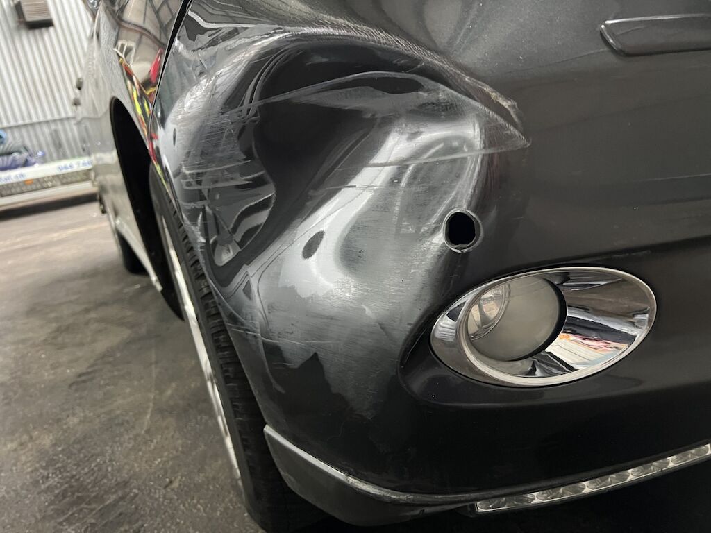 Vorschäden:Delle in der Türe vorne links.Motorhaube hat diverse kleine Beschädigungen.Stosssfänger und Kotflügel vorne links sind beschädigt.Delle Seitenwand hinten links.Fahrzeug hat noch divers kleine Dellen.Felgen sind angefahren.