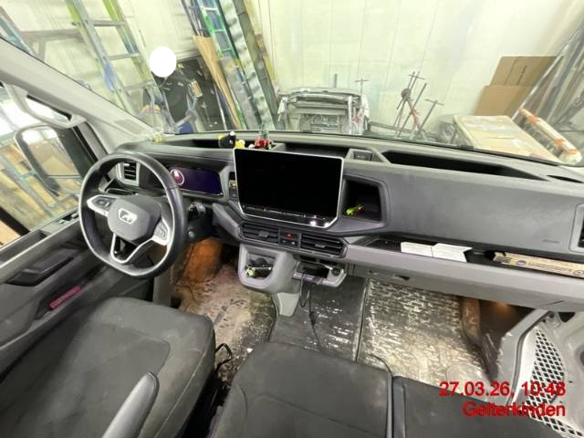 Winterpaket (Elektrische Luft-Zusatzheizung vorn, Scheibenwaschdüsen vorne beheizt, Frontscheibenheizung, Scheinwerfer-Waschanlage), Verteilerpaket Laderaum (Flügeltüren hinten 270°, Seitliche Markierungsleuchten, Verzurrschiene an den Seitenwänden, Trittstufe in der Stossstange hinten, Verzurrschiene an Stirnwand, Fahrerhaustüren, zusätzlich mit verstärkten Türscharnieren auf der Fahererseite, Holzfussboden und Radkastenverkleidung), LED Scheinwerfer, Anhängervorrichtung mit abnehmbarem Kugelkopf, Rückfahrkamera, Innenverkleidung des Laderaums bis Dachhöhe aus Sperrholz