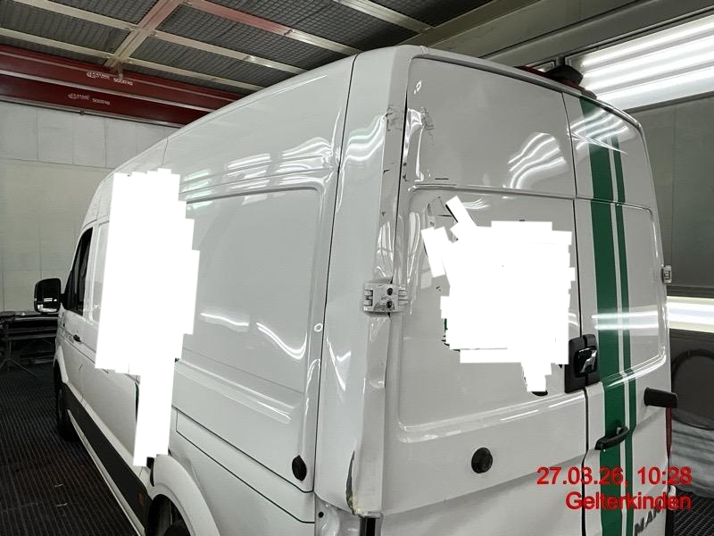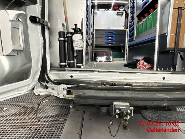Beschreibung der Schäden: Stossfänger mit Ecke und Aufnahme, Schliussleuchte link, Anhängerkupplung, Längsträger links, Heckblech, Ecksäule innen und aussen, Bodenblech hinten, Hecktüre links mit Scharnieren, Verkleidungsblech innen, Seifenspender, Querträger hinten, Abdeckung, Sortimo links hinten, Holzplatte, Dachkannte hinten, Dach hinten links, Seitenwand hinten und vorne, Dachecke links vorne deformiert/gebrochen/zerkratzt Sortimo im Laderaum wird ausgebaut und ist nicht Teil der Auktion