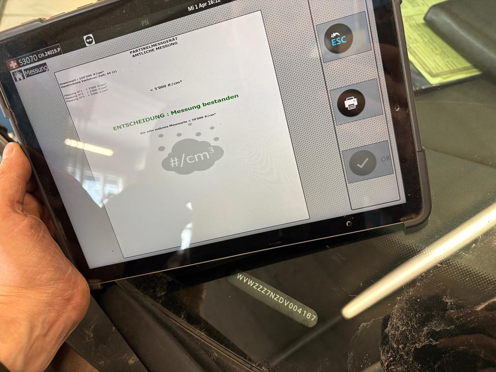 Probefahrt durchgeführt, fährt gut, keine Geräusche, Motor und Getriebe i.O. Dieselpartikelfilter i.O. (siehe Foto von Messung) Winterreifen Conti Seal sehr gut 7mm Profil Sommerreifen Conti Seal gut 4mm Profil Kurzer Werkstatt-Test durchgeführt, festgestellte Mängel: -Querlenker hl (kleines Rostloch) und Feder hl (gebrochen) -Gummilagerbock für Querlenker vorne l+r rissig -Niveausensor für Leuchtweitenregulierung vl gebrochen -Hutablage/Kofferraumabdeckung fehlt (Kunde sucht, vielleicht findet er sie noch) Carrosserie (siehe Fotos): -Rost Türe vl (noch kein Loch) -Kratzer und Beule Schiebetür links -Wenig Rost an Seitenwand hl (noch kein Loch) -Kratzer an Stossstange hl und Ladekante -Wenig Rost an Schiebetür rechts hinten (noch kein Loch) -Kleine Parkschaden-Beule Türe vr unter Griff -Schraube für Kennzeichenhalter hinten rechts abgebrochen
